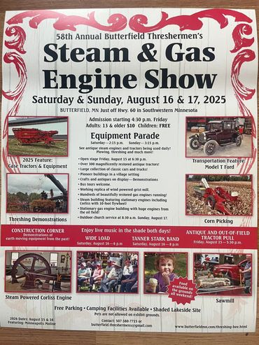 Contact: 507-380-7715 or butterfield.threshermens@gmail.com